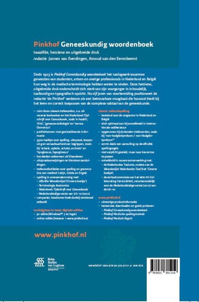 Sinds 1923 is Pinkhof Geneeskundig woordenboek het naslagwerk waarmee generaties van studenten, artsen en overige professionals in Nederland en België hun weg in de medische terminologie hebben weten te vinden. Deze herziene, uitgebreide druk onderscheidt zich sterk van zijn voorganger in inhoudelijk, taalkundig en typografisch opzicht. Na vijf jaren van voorbereiding positioneert de redactie ‘de Pinkhof’ wederom als een betrouwbare vraagbaak die houvast biedt bij het leren en correct toepassen van de complexe vaktaal van de geneeskunde.